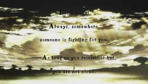 ▲『Don't forget. Always somewhere, someone is fighting for you. --As long as you remember her, you are not alone.』