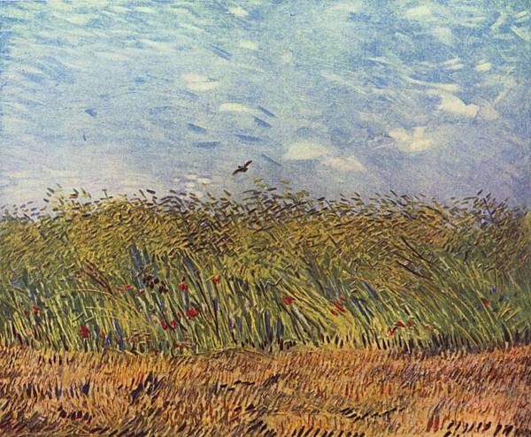 「誰說梵谷是自殺?也有人說他是被謀殺、或是被某個愛惡作劇的人意外弄死的。梵谷早期畫過一幅與『麥田群鴉』構圖十分相似的畫,『麥田雲雀』,天空、麥田、小徑,在麥田與藍天中間是振翅而起的鳥類身影。為什麼沒有人願意猜想,『麥田群鴉』是梵谷重回原點、想重新開始的暗號?」